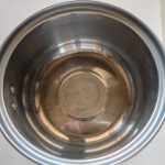 先日の焦げ焦げはピカピカになりました。 御酢を入れて放って置き、その後タワシでこすると綺麗になります。 但し、漬けてる最中は御酢の臭いがしますけどね。 焦げた臭い、御酢の酸っぱい臭い、暫くうっとうしかったのですが、これでスッキリしました。 このお鍋はずっと前に安売りで500円だったので、こんなに苦労する値打ちがあるかどうか疑問ですけどね。以前、高校の同級生で東大教授になった人がお料理自慢で、「家には5000円以下の鍋は無い」と言ってえばっていましたが、お鍋の値段で味が変わる物かしら? 腕と言うか感覚ではないかと思いますが。