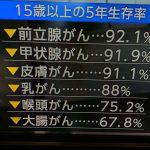 癌になった時の直り具合が発表されました。一番治りが良いのは前立腺癌で、私の予想と違ってしまいました。前立腺癌って頻度が高いし発見も早いかと思いますが、女性の乳癌より治りが良いとは思いませんでした。 大腸癌が思ったより治りが良く、5年後の生存率が70%程度でした。 皮膚に近く発見が早い物が治りが良いように思います。発見した時のステージと治療の効果、後、地域別と言いますか病院ヘノアクセスによる違い等もあるかと思いました。いずれにせよ癌にはなりたくないですね。 肺癌が治りが悪いと思いますので煙草を吸わないようお願いします。早く癌が治る病気になると良いと思いますが、やっと一緒に生きる時代だそうで未だこれからです。